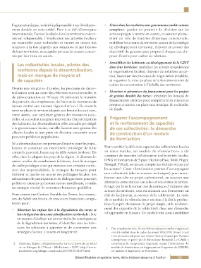 territoires depuis la décentralisation, et organisations locales), disposer de solutions accep-
