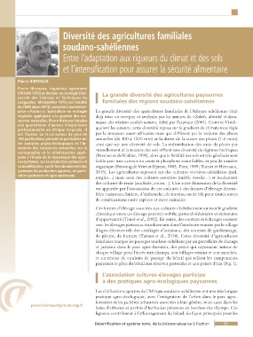prise « Pastoc »). Spécialiste en écologie La grande diversité des agricultures familiales de l’Afrique sahélienne était